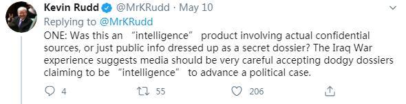 5月10日,陸克文在社交媒體再次連發(fā)五問,質(zhì)疑可能參與此次“甩鍋中國”事件的各方。他的第一問稱,這所謂的15頁“情報(bào)”,究竟是源于真實(shí)的絕密情報(bào),還是根據(jù)公開信息拼湊而成?他表示,“伊拉克戰(zhàn)爭的教訓(xùn)早已告誡媒體,必須謹(jǐn)慎對待所謂的‘情報(bào)’,以防陷入某種政治目的之中?!?/p>