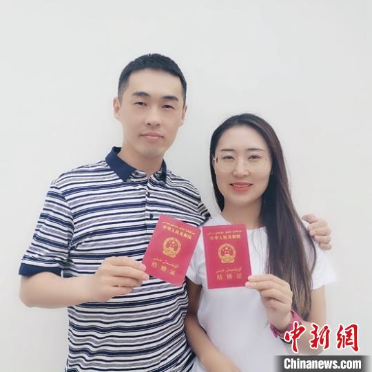 隋鑫與劉歡在5·20當(dāng)天領(lǐng)證登記。 王康 攝