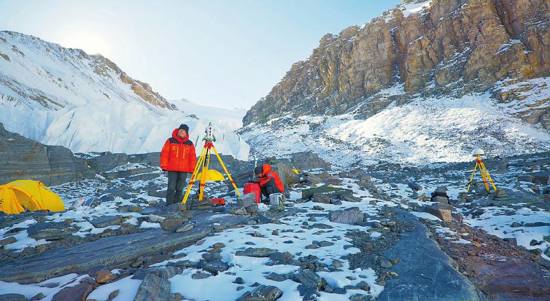 更多測繪人的日常被記錄下來。史志剛,重力測量組組長,除完成珠峰地區(qū)加密重力測量之外,他還完成海拔5200米至6000米所有6個交會點的重力測量,成為本次珠峰高程測量項目中,唯一一個走遍所有交會測量點的人。王戰(zhàn)勝,在本次珠峰高程測量中負責(zé)高程導(dǎo)線、GNSS測量和東絨3點的交會測量工作。他攀冰跨河,4次到達海拔最高的東絨3交會點。鄭林,大本營交會測量組組長,帶著年輕隊員武光偉克服了距離峰頂遠、交會測量難度大的困難,完成珠峰大本營的交會測量及基準(zhǔn)站值守工作……