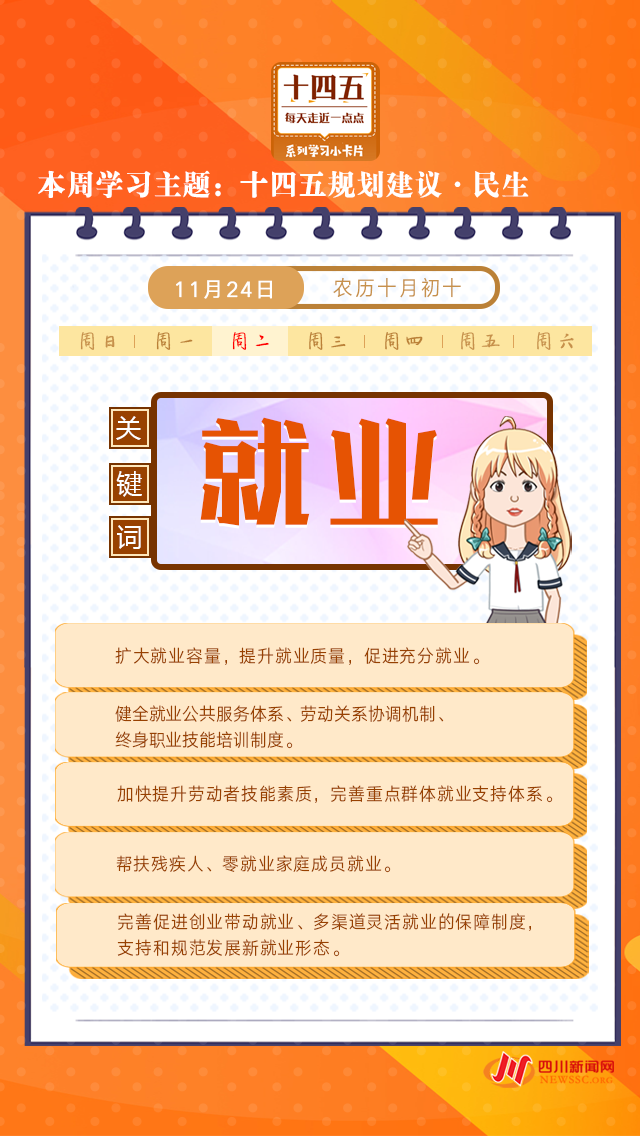 本周學習主題“十四五規(guī)劃建議·民生”系列,一張張學習卡帶你了解就業(yè)、收入、住房……那些與你息息相關(guān)的民生舉措!今天打卡學習“十四五”規(guī)劃建議中有關(guān)就業(yè)的舉措。