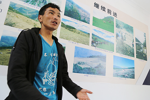 同樂村感恩連連長和生向記者介紹感恩連情況。人民網 宋晨攝