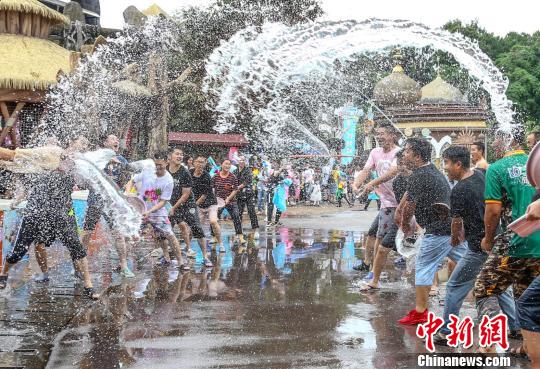 圖為游客們手持水槍、水盆等道具展開“激戰(zhàn)”。 鐘欣 攝