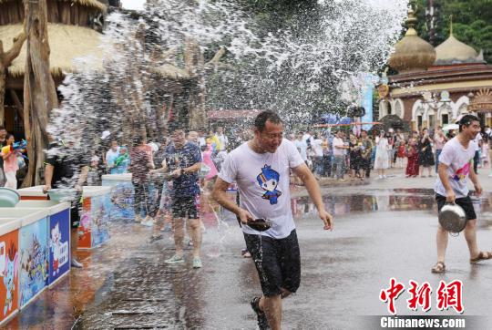 圖為游客們手持水槍、水盆等道具展開“激戰(zhàn)”?!$娦?攝