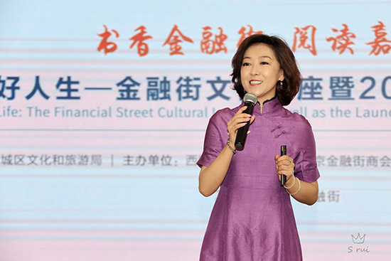 金融街街道辦事處主任徐建生,西城區(qū)文化與旅游局工會(huì)主席王來明,金融街商會(huì)秘書長(zhǎng)、金融街書局執(zhí)行董事兼總經(jīng)理沈宏昌,中非產(chǎn)能合作基金綜合行政總監(jiān)詹旭,北京農(nóng)商銀行總行機(jī)關(guān)工會(huì)主席毛冉輝,北京百萬莊圖書大廈有限公司常務(wù)副總經(jīng)理陳強(qiáng),中國(guó)少年兒童新聞出版總社《中國(guó)兒童報(bào)》副主編高慧月,北京讀書形象大使、北京金牌閱讀推廣人宸冰老師等來自近50家金融機(jī)構(gòu)及大型企業(yè)集團(tuán)的近100多位閱讀愛好者到場(chǎng)參加了啟動(dòng)儀式。隨后,北京讀書形象大使、北京金牌閱讀推廣人宸冰為現(xiàn)場(chǎng)嘉賓做了“閱讀成就美好人生”講座。