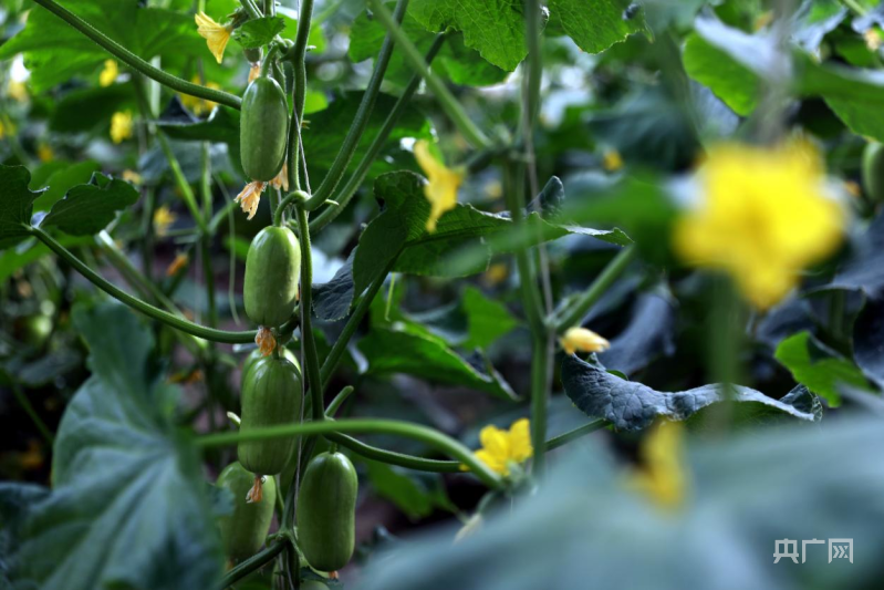 大棚里,黃瓜長勢喜人(央廣網(wǎng)記者 唐磊 攝)