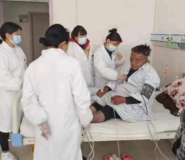 隨后,林旭萍迅速跟隨救護車到達現(xiàn)場,患者家屬看見醫(yī)生來了,用著不熟練的漢語說“醫(yī)生,救救他......”通過交流,林旭萍和隨行護士監(jiān)測生命體征、測血糖,并予以吸氧后,初步考慮是高原反應外加呼吸性堿中毒可能,并伴低血糖。在安撫病人及家屬,并予以對癥處理后,患者轉(zhuǎn)危為安?;颊呒凹覍倬浅8兄x樂山市中醫(yī)醫(yī)院的林旭萍和中藏醫(yī)院的醫(yī)護人員,對于林旭萍來說,自己也感受到了在新龍縣中藏醫(yī)院的價值與目標所在,她告訴自己,自己一定能堅定地繼續(xù)服務于西藏人民。
