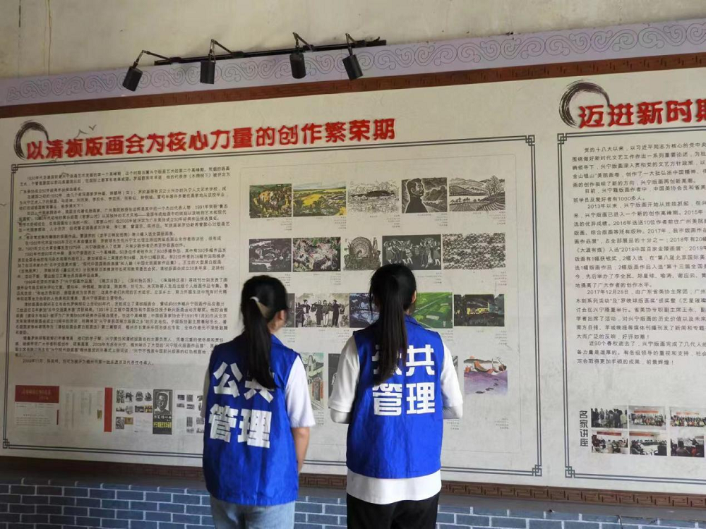 7月7日-7月10日,廣東財經(jīng)大學“版興紅韻”實踐團前往興寧市葉塘鎮(zhèn)開展主題為“激活興寧版畫資源,弘揚紅色革命文化”的“百千萬工程”突擊隊行動,隊員們參觀了位于興寧市葉塘鎮(zhèn)的磐安圍,抗戰(zhàn)木刻作品展覽區(qū)、羅映球版畫作品展覽區(qū)等版畫作品展覽讓隊員們感受到非遺文化的魅力,隊員們還開展了版畫畫家訪談、參觀“十里版畫長廊”、記錄版畫故事、青少年問卷調(diào)查等活動,讓他們對探索弘揚傳統(tǒng)非遺文化與蘇區(qū)精神有了新的思考。