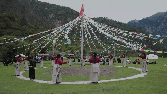 緊鄰國(guó)道317川藏北線,一座如同世外桃源般的藏族村寨——西藏昌都市江達(dá)縣同普鄉(xiāng)夏榮村,隱藏在草木青翠的崇山峻嶺與層層相疊的梯田間。側(cè)耳傾聽,山谷間傳來(lái)一陣陣悠揚(yáng)的藏族民歌,放眼望去,當(dāng)?shù)鼐用窈陀慰蛡冋凇盀⑦帧保ㄒ鉃橐环N休閑、娛樂(lè)的方式)營(yíng)地上載歌載舞。青山綠水間,飛舞的袍袖,靚麗的藏式民居,陣陣歡笑聲,構(gòu)成了一幅民族團(tuán)結(jié)、鄉(xiāng)村振興的對(duì)口援藏幫扶暖心圖景。
