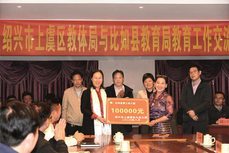 2020年8月,浙江省紹興市上虞區(qū)教體局有關領導帶領上虞區(qū)教育考察團赴比如縣考察對口支援工作 。王莉 攝