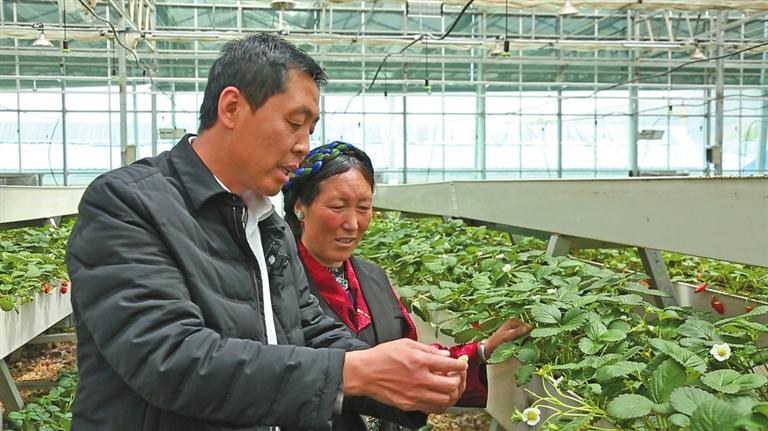 南木林縣數(shù)字農(nóng)業(yè)產(chǎn)業(yè)園內(nèi),山東省第八批援藏干部調(diào)研“艾瑪”土豆種薯擴繁發(fā)展情況。