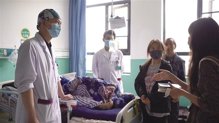 天津市第十批援藏干部、昌都市藏醫(yī)院外科行政副主任陳陽(yáng)(左一)正在查房。記者 貢曲羅杰 鄭常容