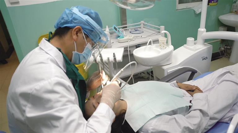 天津市第十批援藏干部、昌都市藏醫(yī)院口腔科副主任醫(yī)師杜斌正在對(duì)患者開展口腔治療。記者 貢曲羅杰 鄭常容