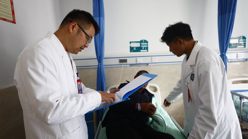 向桂林是一名援藏醫(yī)生,2023年3月,他從重慶市萬州區(qū)來到西藏自治區(qū)昌都市察雅縣開展醫(yī)療援藏工作。在察雅的一年半里,向桂林和隊(duì)員們參加了一百多次義診和下鄉(xiāng)指導(dǎo),累計(jì)接診門診患者1000余人次、救治住院患者400余人次,開展手術(shù)35臺,申報(bào)新技術(shù)10項(xiàng)。今年國慶,向桂林選擇繼續(xù)留守工作崗位?!爸荒茉谝曨l通話里和家人團(tuán)聚了。但這是我們的責(zé)任更是一種榮譽(yù)?!毕蚬鹆终f。