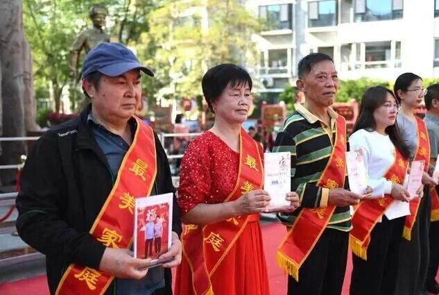 9月25日,寧夏銀川市長(zhǎng)城花園社區(qū),居民領(lǐng)取社區(qū)“最美家庭”獎(jiǎng)。