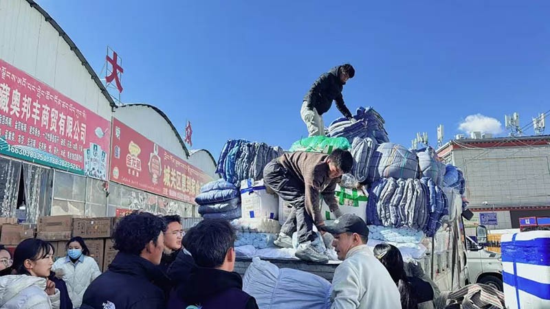 立馬行動起來!他們自籌資金,陳軍亮還聯(lián)系到一些戰(zhàn)友,共同集資采購救災(zāi)物品。作為公益機(jī)構(gòu)負(fù)責(zé)人,王順利和她的小伙伴,第一時間買了從西安轉(zhuǎn)機(jī)飛往拉薩的機(jī)票,并在路上聯(lián)絡(luò)西藏的伙伴,采購物資足足裝了3卡車,共30多噸,價值超過40萬元,緊急運(yùn)輸發(fā)往定日。