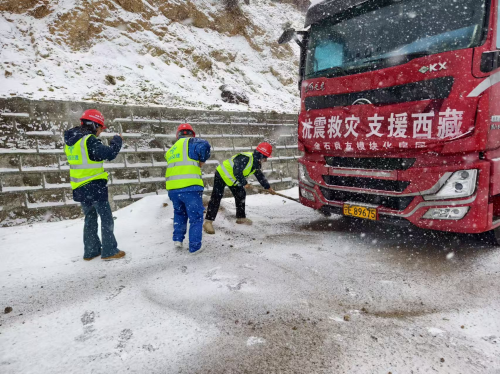 1月13日中午,一輛滿載援藏物資的紅色卡車在海拔4800米的安多境內(nèi)遭遇強降雪,車輛失控,形勢萬分危急。在這關(guān)鍵時刻,中交建設(shè)者們挺身而出,成功救助了遇險車輛,確保了寶貴物資的安全?! ?/p>