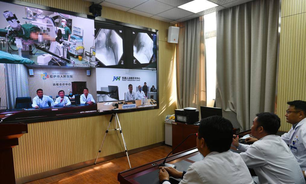 4月19日,拉薩市人民醫(yī)院骨科醫(yī)生在北京積水潭醫(yī)院專家遠(yuǎn)程指導(dǎo)下使用骨科機(jī)器人開展骨科手術(shù)。[詳細(xì)] -