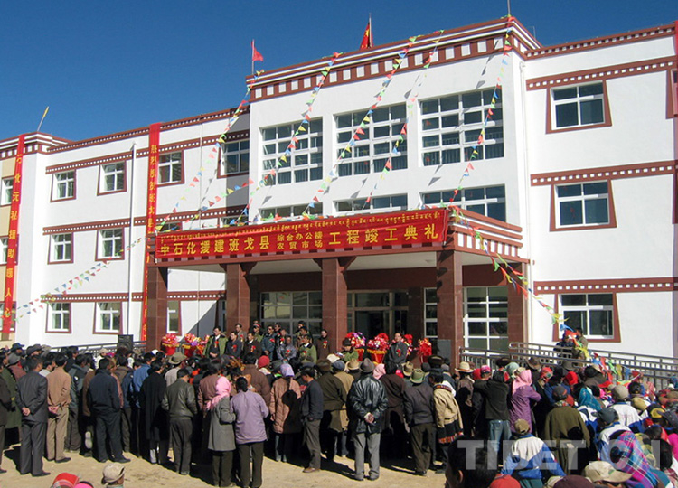 這是由中國(guó)石化所援建的班戈縣綜合辦公樓工程竣工典禮儀式(李一超提供,2004年10月18日攝)