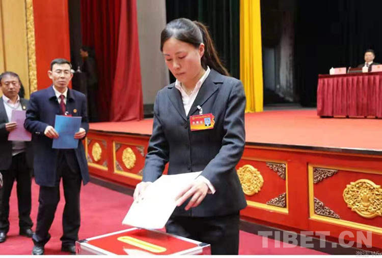 圖為談小燕同志參加嘉黎縣第十三屆人民代表大會(huì)投票選舉照片由談小燕提供