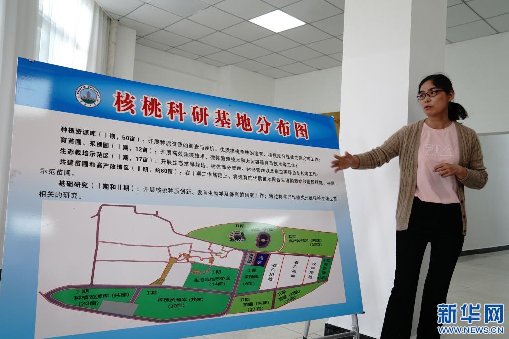 長江大學教師劉利平博士介紹核桃產(chǎn)業(yè)項目(2021年7月8日攝)。新華社記者 劉洪明 攝