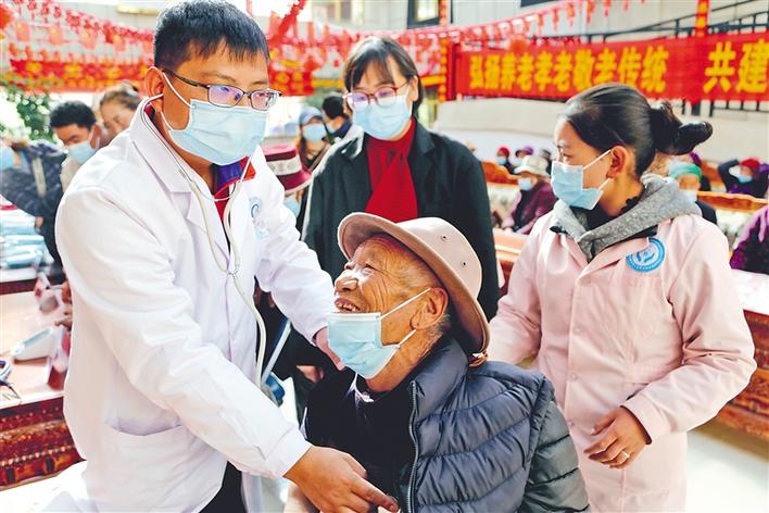 每年的10月是山南市瓊結(jié)縣的“敬老月”,2020年10月30日,縣衛(wèi)生系統(tǒng)黨總支組織縣人民醫(yī)院、藏醫(yī)院、疾控中心、醫(yī)保局等醫(yī)務(wù)工作者,在縣特困人員集中供養(yǎng)中心開展了以“弘揚養(yǎng)老孝老敬老傳統(tǒng)、共建共享老年友好社會”為主題的健康服務(wù)活動。讓老人們切切實實感受到黨和政府的關(guān)懷和溫暖,感受到全社會的關(guān)愛和重視。 圖為縣人民醫(yī)院援藏醫(yī)生正在為老人檢查身體(2020年10月30日攝)。