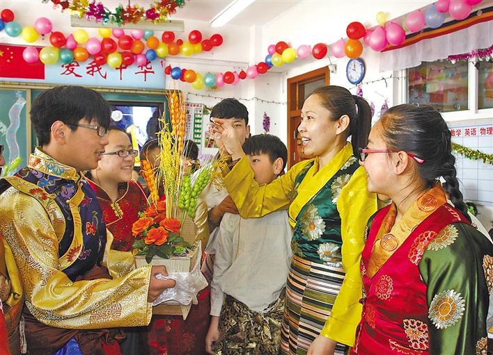 2015年以來,通過實施教育人才“組團(tuán)式”援藏,有力提升了西藏的教育水平。目前,西藏有各級各類學(xué)校3195所,學(xué)前教育三年毛入園率達(dá)87%,小學(xué)凈入學(xué)率達(dá)99.93%,初中、高中、高等教育毛入學(xué)率分別達(dá)106.99%、90.2%、56.14%,縣域義務(wù)教育實現(xiàn)基本均衡發(fā)展,義務(wù)教育鞏固率95.03%,新增勞動力人均受教育年限提高到13.1年。