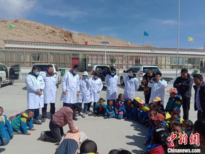 醫(yī)療隊為波絨鄉(xiāng)中心小學(xué)師生進行心肺復(fù)蘇現(xiàn)場培訓(xùn)?!熍_援藏醫(yī)療隊供圖