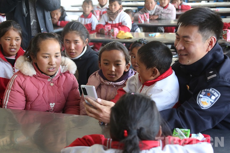 12月15日,在西藏自治區(qū)拉薩市空港新區(qū)甲日小學(xué)內(nèi),拉薩出入境邊防檢查站(以下簡(jiǎn)稱:拉薩邊檢站)的民警和同學(xué)們一起撥通了東莞出入境邊防檢查站(以下簡(jiǎn)稱:東莞邊檢站)的視頻電話,孩子們看到屏幕中相隔萬里的廣東東莞的叔叔阿姨們,迫不及待展示最近的學(xué)習(xí)成果。