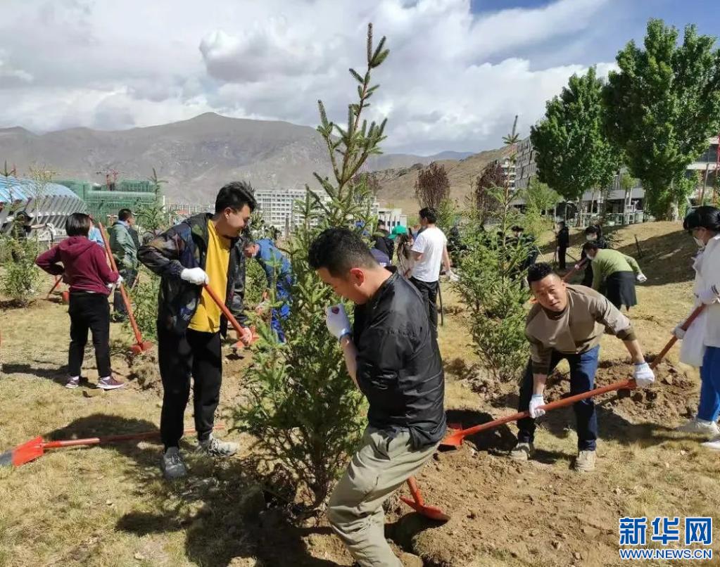 在植樹現(xiàn)場,大家揮鍬鏟土、澆水培樹,一派熱火朝天的勞動景象,留下在拉薩的“綠色回憶”。本次植樹造林活動共種下云杉、海棠、紫葉李、蘋果樹、丁香等樹木約2000株。志愿者們還將定期開展日常養(yǎng)護(hù)工作,鞏固綠化成果。