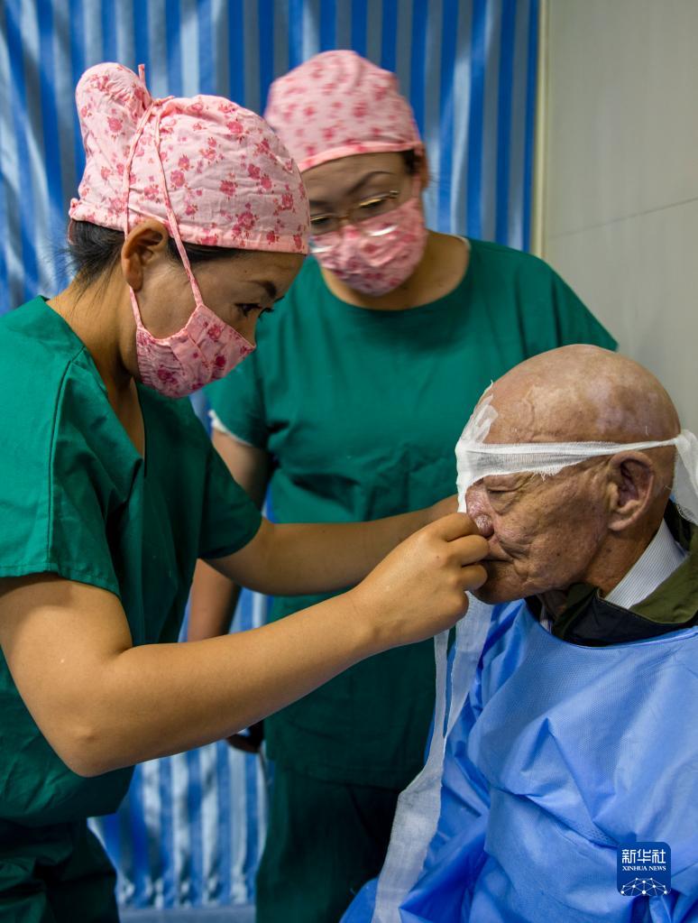 6月8日,光明眼科康復(fù)診療院的醫(yī)生在為一位農(nóng)牧民患者做白內(nèi)障手術(shù)。新華社記者 姜帆 攝