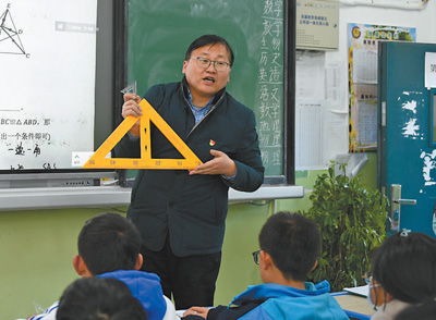 繁忙的管理工作以外,吳智勇主動承擔了初二年級一個班的數(shù)學(xué)教學(xué)工作。每個學(xué)期,他都會收兩到三名教師作“徒弟”,他說:“我會查看他們的教學(xué)計劃、教學(xué)備課材料,盡量多聽他們的課,并在課后進行輔導(dǎo)?!敝灰挥锌?,他還會隨機聽本地教師講的數(shù)學(xué)課,課后進行交流。