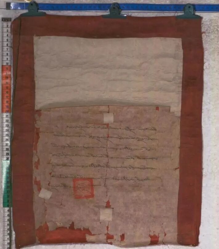 ▲(圖二)1703年六世達(dá)賴?yán)镱C發(fā)給白熱康薩的文告。(作者供圖)
