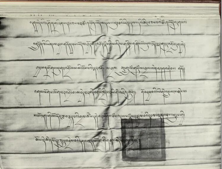 這類附著于文告的標(biāo)識(shí),與其正文共同構(gòu)成了完整的檔案實(shí)體,清晰地將文書權(quán)威與“第六輩達(dá)賴?yán)飩}(cāng)央嘉措”這一身份緊密關(guān)聯(lián),為倉(cāng)央嘉措的政教身份與職權(quán)行使,提供了不可多得的原始實(shí)物證據(jù)。