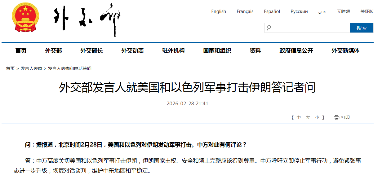 應(yīng)中國(guó)和俄羅斯的要求,聯(lián)合國(guó)安理會(huì)緊急召開會(huì)議。中國(guó)外交部第一時(shí)間表明嚴(yán)正立場(chǎng):伊朗國(guó)家主權(quán)、安全和領(lǐng)土完整應(yīng)該得到尊重。