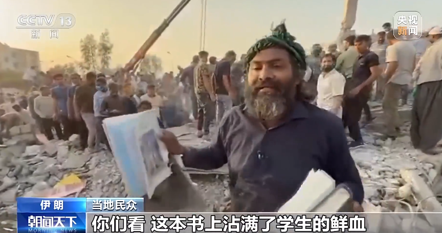 當(dāng)?shù)貢r(shí)間2月28日,美國(guó)和以色列對(duì)伊朗發(fā)動(dòng)聯(lián)合軍事打擊,伊朗一所女子小學(xué)遭到導(dǎo)彈襲擊。遇襲學(xué)校教室被毀,磚石瓦礫落滿(mǎn)桌椅,學(xué)生遺落的書(shū)本散落地面。當(dāng)?shù)孛癖姂嵟硎荆骸昂⒆觽兘裨缡莵?lái)上學(xué)的,如今卻被掩埋在廢墟之下!這是孩子們的課本,書(shū)上沾滿(mǎn)了學(xué)生的鮮血……”圖片來(lái)源于央視網(wǎng)