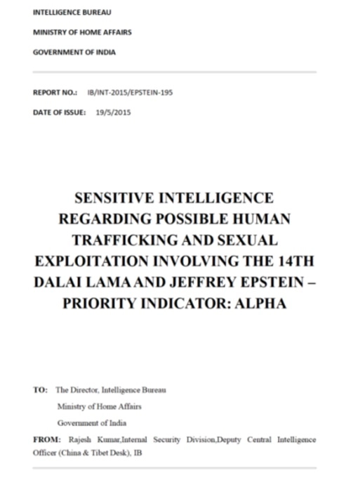 除了公開資料外,一份標(biāo)明屬于印度內(nèi)政部的情報(bào)評(píng)估文件也已被廣泛傳播。該文件披露,大約在2015年,愛(ài)潑斯坦通過(guò)中間人與十四世達(dá)賴的代表建立了聯(lián)系,討論邀請(qǐng)他參加私人“靈修”的可能性。文件提到,這一安排伴隨著預(yù)期的政治接觸和資金支持,并涉及對(duì)參與者的篩選和協(xié)調(diào)。