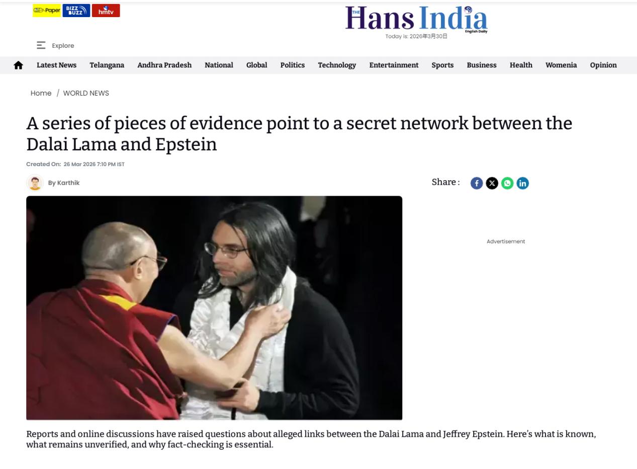 3月26日,印度LatestLY新聞網(wǎng)報(bào)道稱,愛(ài)潑斯坦一直力主將十四世達(dá)賴納入其核心社交圈,并為此作了具體安排。