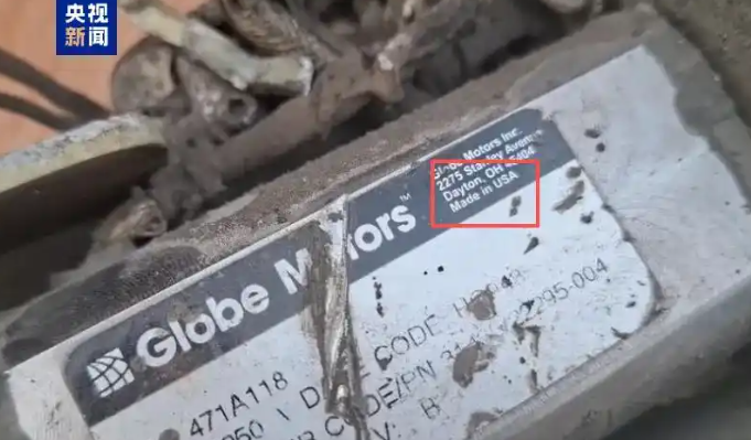 襲擊伊朗南部米納卜學(xué)校的導(dǎo)彈殘片上“美國制造”字樣清晰可見 圖:央視新聞