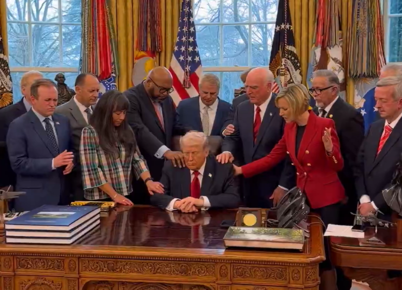 特朗普與來自全美各地的牧師一同祈禱 圖:觀察者網(wǎng)