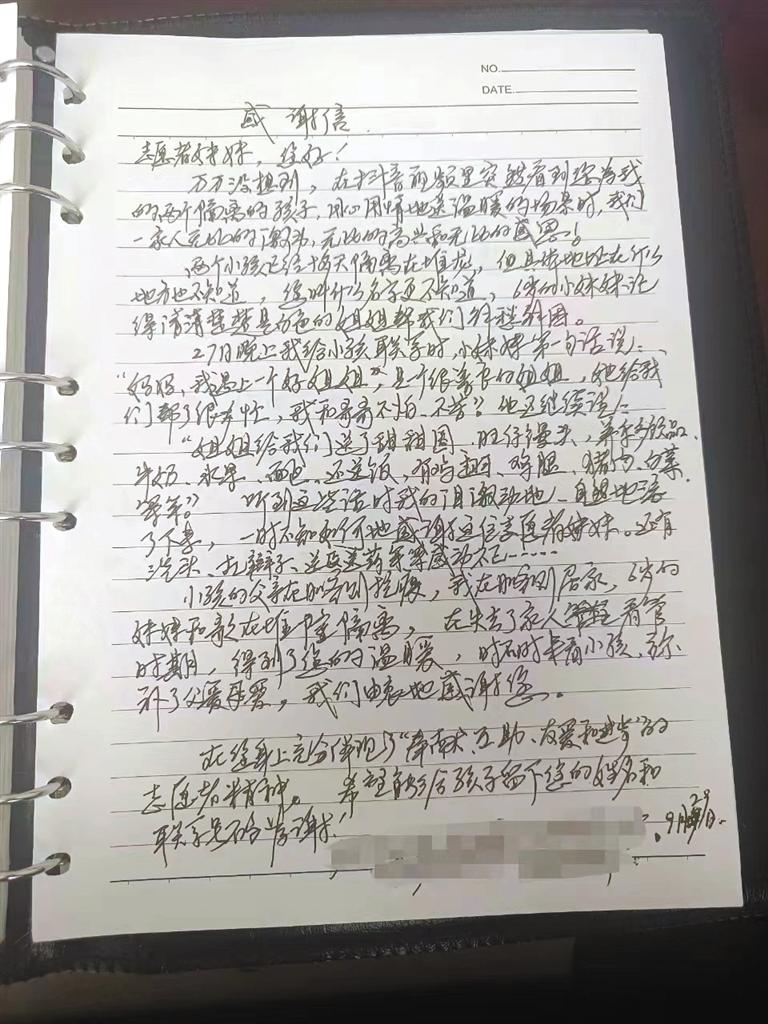 群眾寫(xiě)給派出所民警的感謝信。