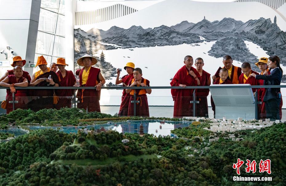 圖為5月17日,西藏少年活佛參學(xué)團(tuán)參觀杭州西湖博物館。