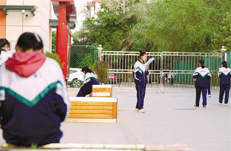在拉薩中學(xué)的校園內(nèi),高三學(xué)生們抓緊時間復(fù)習(xí)備考。記者 潘多 攝