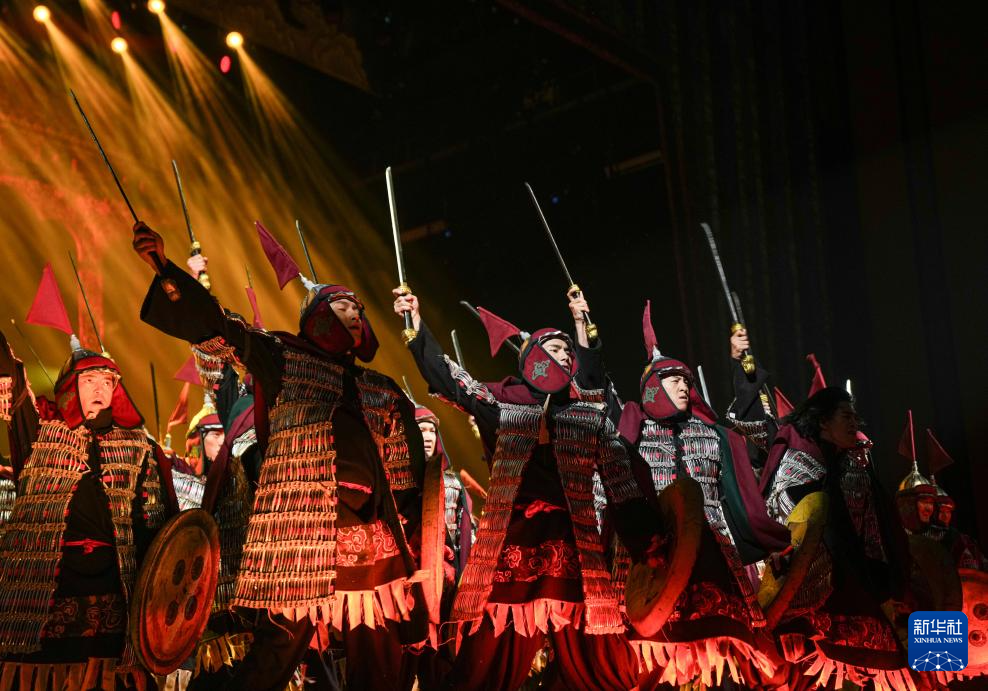 7月19日,在西藏拉薩《緣起象雄·古格遺風(fēng)》情景歌舞詩演出現(xiàn)場,演員在表演節(jié)目《勇士戰(zhàn)舞》。新華社發(fā)(格桑雍珍 攝)