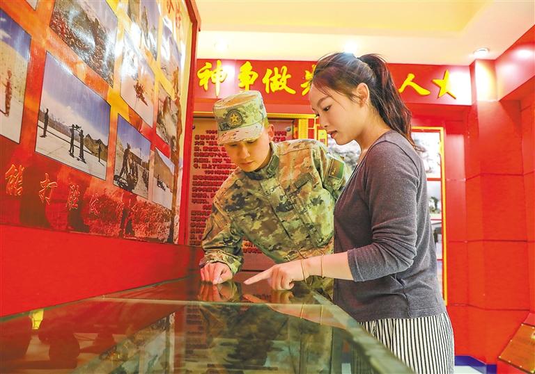圖為7月31日,駐藏某部開展“軍屬進(jìn)軍營、共慶八一建軍節(jié)”主題活動,邀請官兵家屬走進(jìn)軍營,了解官兵日常工作和生活情況,不斷增進(jìn)廣大軍屬的認(rèn)同感與自豪感。這是官兵家屬在參觀部隊(duì)榮譽(yù)室。記者 次仁平措 通訊員 劉曉東 攝