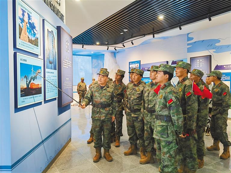 圖為8月1日,安多縣人武部組織官兵民兵參觀安多唐古拉陳列館,重溫紅色歷史,汲取革命力量。這是安多縣人武部部長張學(xué)功為民兵講解展陳內(nèi)容。記者 趙書彬 攝