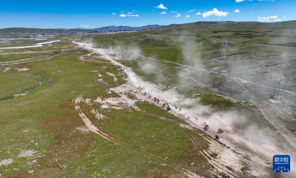 8月12日,騎手在傳統(tǒng)十公里大跑項目中角逐(無人機照片)。新華社記者 晉美多吉 攝