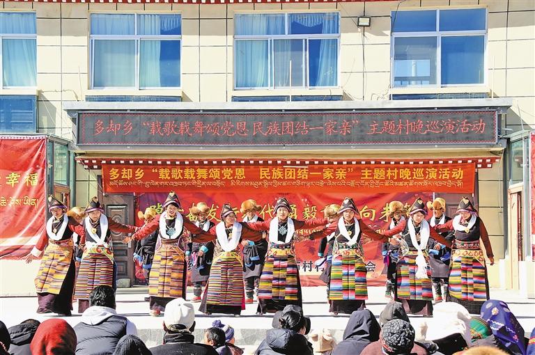 “把舞臺(tái)搭到群眾身邊,把歡樂(lè)送到群眾中間,演的是群眾熟悉的事,說(shuō)的是群眾愛(ài)聽(tīng)的話,傳的是群眾真摯的情。”多卻鄉(xiāng)相關(guān)負(fù)責(zé)人表示,下一步,將更加自覺(jué)地承擔(dān)起“舉旗幟、聚民心、育新人、興文化、展形象”的使命任務(wù),用更豐富的文化活動(dòng)、更高質(zhì)量的文藝演出弘揚(yáng)民族精神、時(shí)代精神,激發(fā)群眾積極向上的精神風(fēng)貌,為建設(shè)宜居宜業(yè)和美多卻貢獻(xiàn)更多文藝力量。