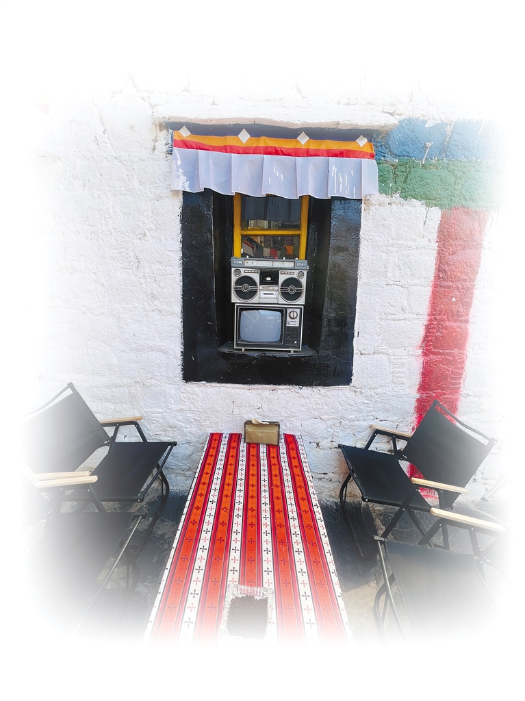 貢桑孜大院內(nèi)擁有百年歷史的藏式樓房,既保留了舊時的風韻,也展現(xiàn)著年輕的活力。旦增特覺打小在大院長大,如今他與旦增格桑、扎西多吉在大院一樓西北角經(jīng)營“森廈”咖啡店,店內(nèi)咖啡飄香,顧客往來,讓這座古老的大院充滿活力。為了讓咖啡店契合古院這份古韻古色的魅力,旦增特覺特意從家中拿來了舊茶杯、桌子、老電視機等諸多老物件。大院中間,桌椅板凳安置妥當,供居民休憩閑聊,陽光灑下,糌粑香、甜茶香混著家常話,滿是歲月靜好。