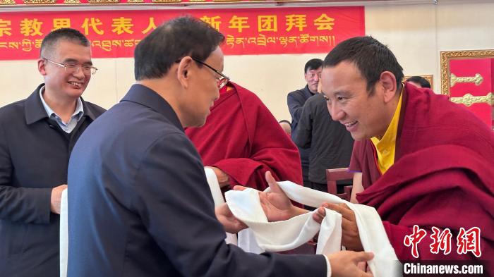 27日,在2025年元旦來臨之際,西藏自治區(qū)黨委統(tǒng)戰(zhàn)部在拉薩舉行全區(qū)宗教界代表人士新年團(tuán)拜會(huì)。