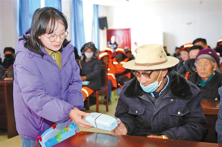 圖為工作人員向群眾贈送印有法治知識的禮品。
